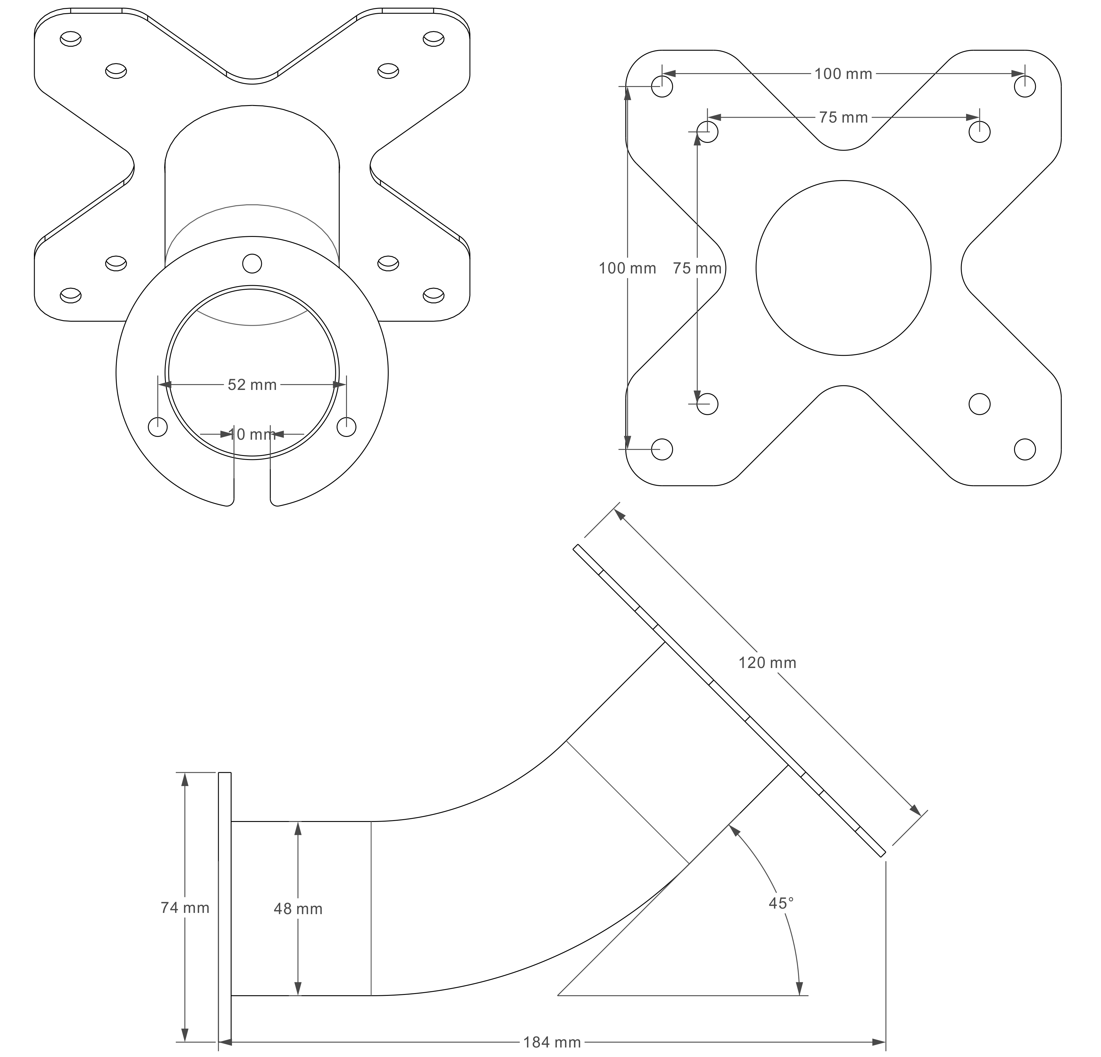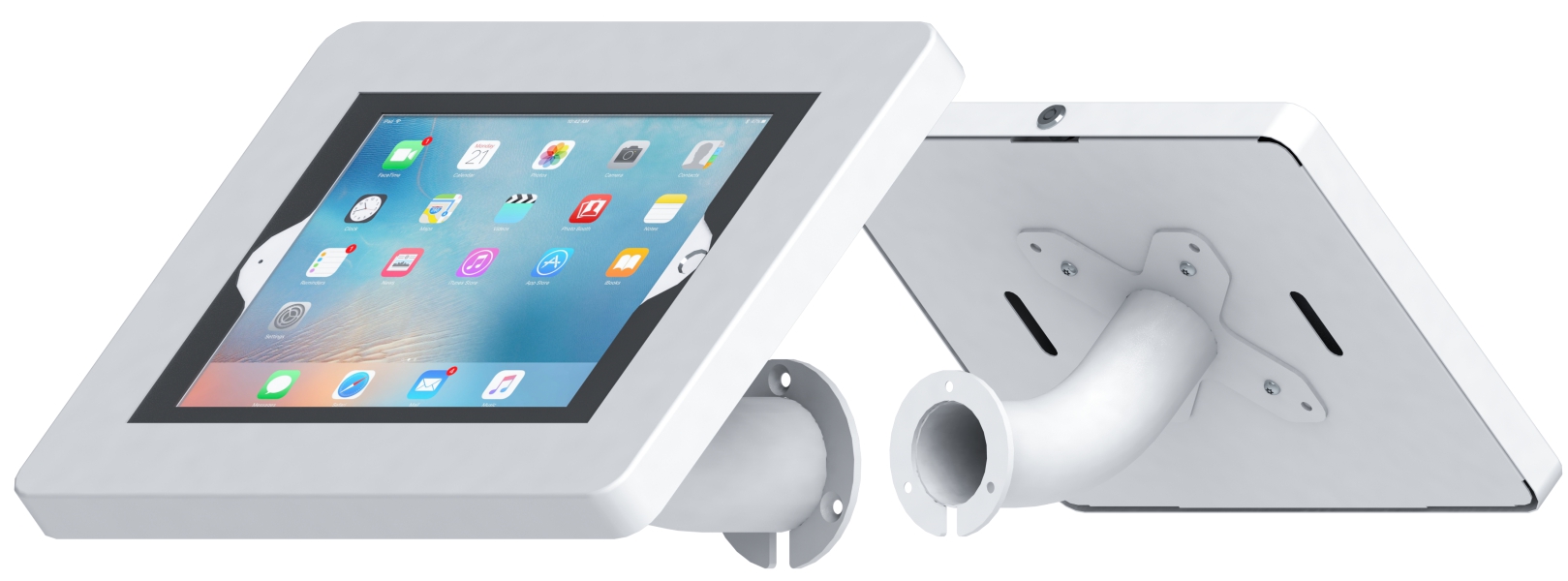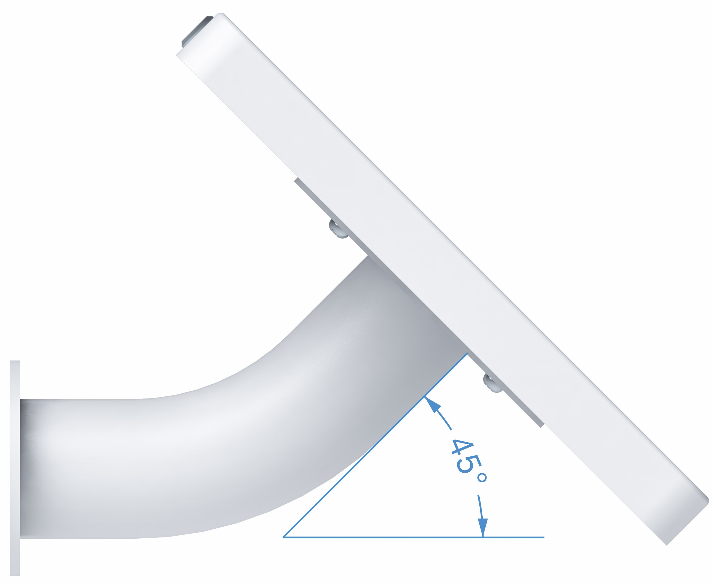Curve Fix 45° Wall Bracket is a secure wall mount tablet kiosk features a 45°curve angle tube with VESA plate. It can securely mount your device to any wall, table or desktop. Portrait or landscape. Cable routing through tube gives clean look. Different enclosure choice. Ideal for restaurant, shop, hotel, tradeshow.