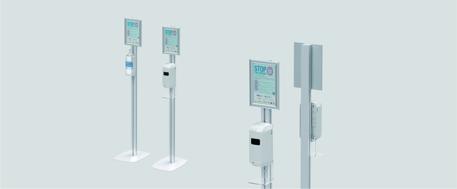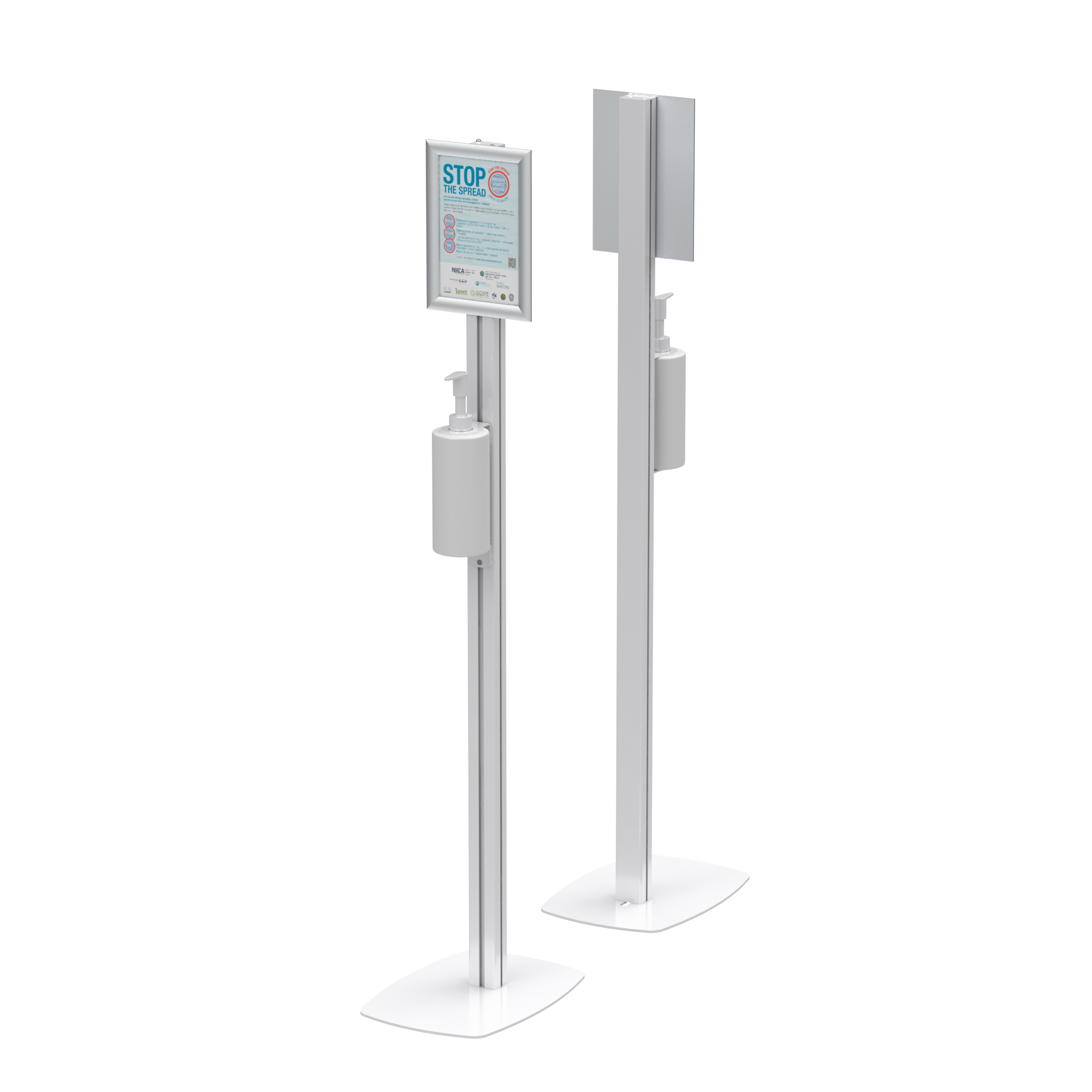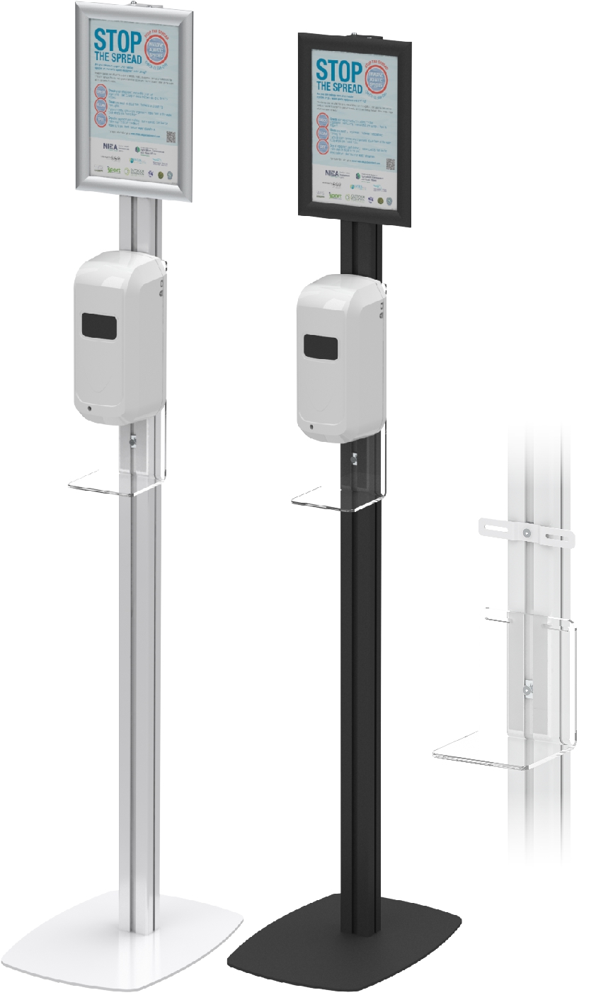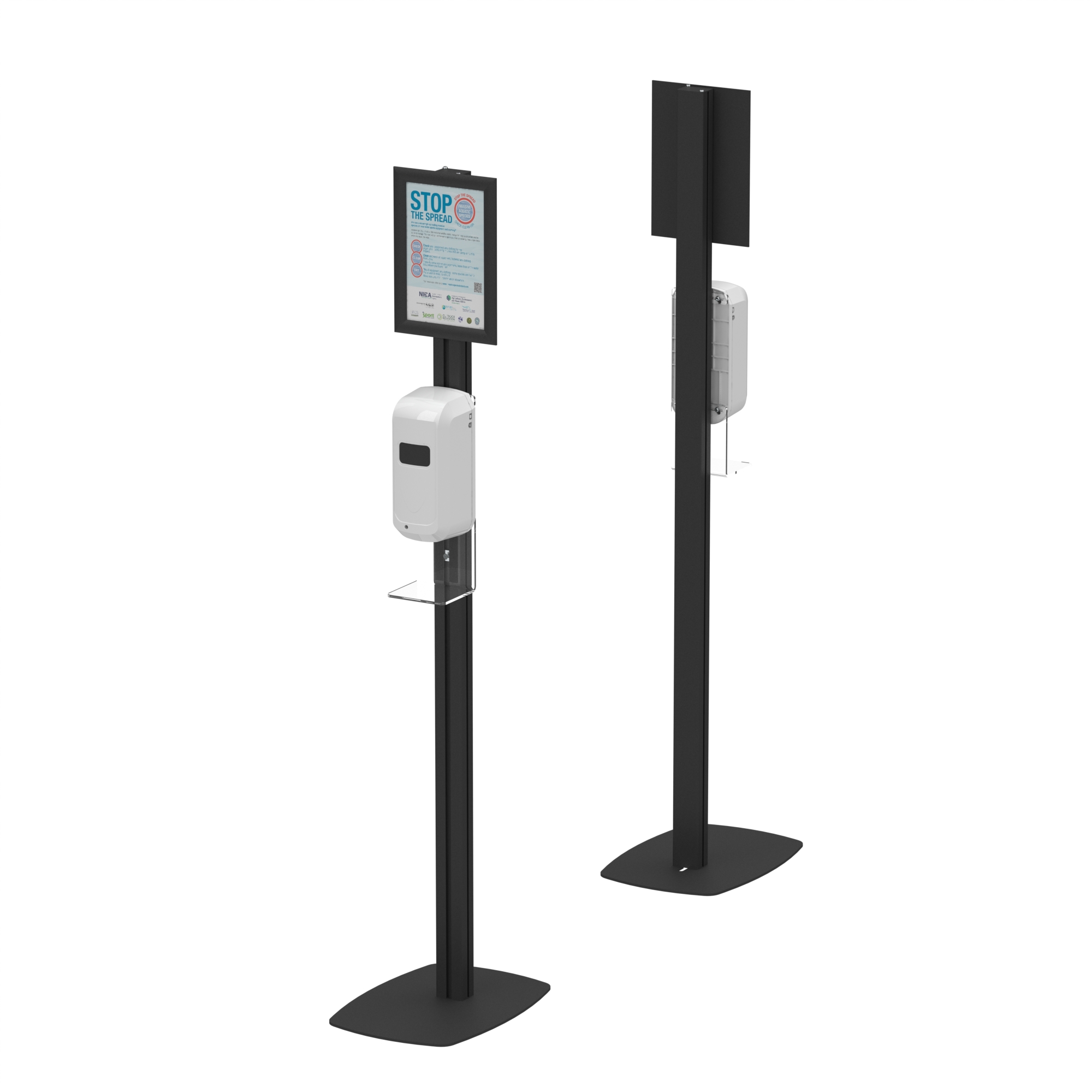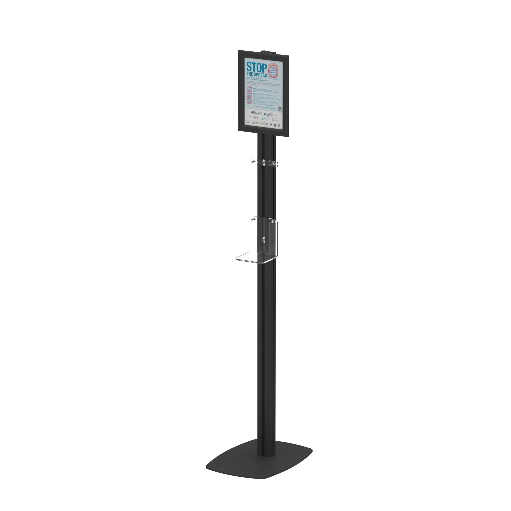 This premium feel floor standing hand sanitizer dispenser stand features an durable aluminium pole with slots, a wide & stable base and an A4 snap frame. Thanks to its slot structure on pole, you can adjust the height of the dispenser freely for different locations such as shops, school, hospitals or any other establishment. Make hand-hygiene a breeze using this hand sanitizing station stand.