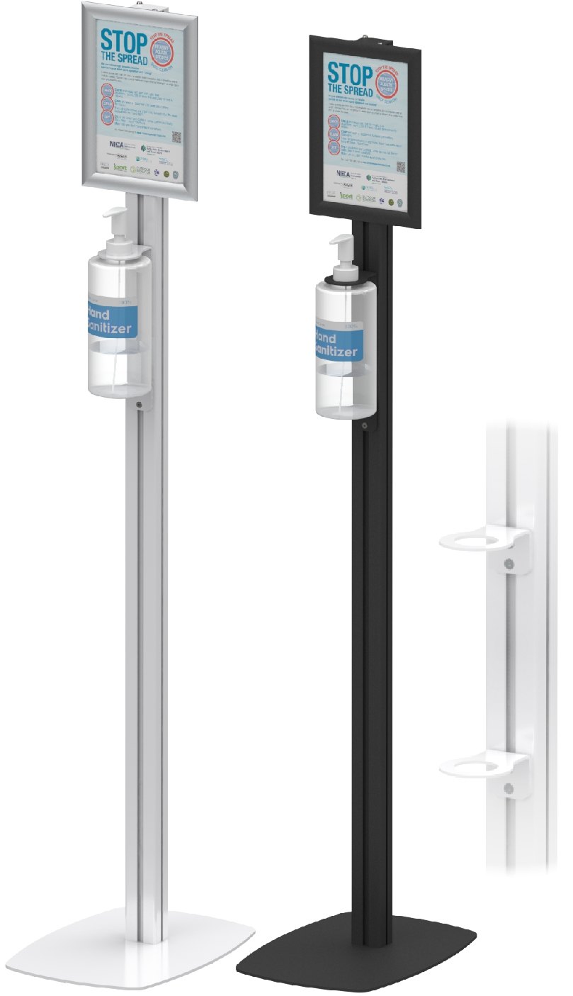 With A4 holders for wall mounted type or bottle type hand sanitizers, easy to replace graphic.