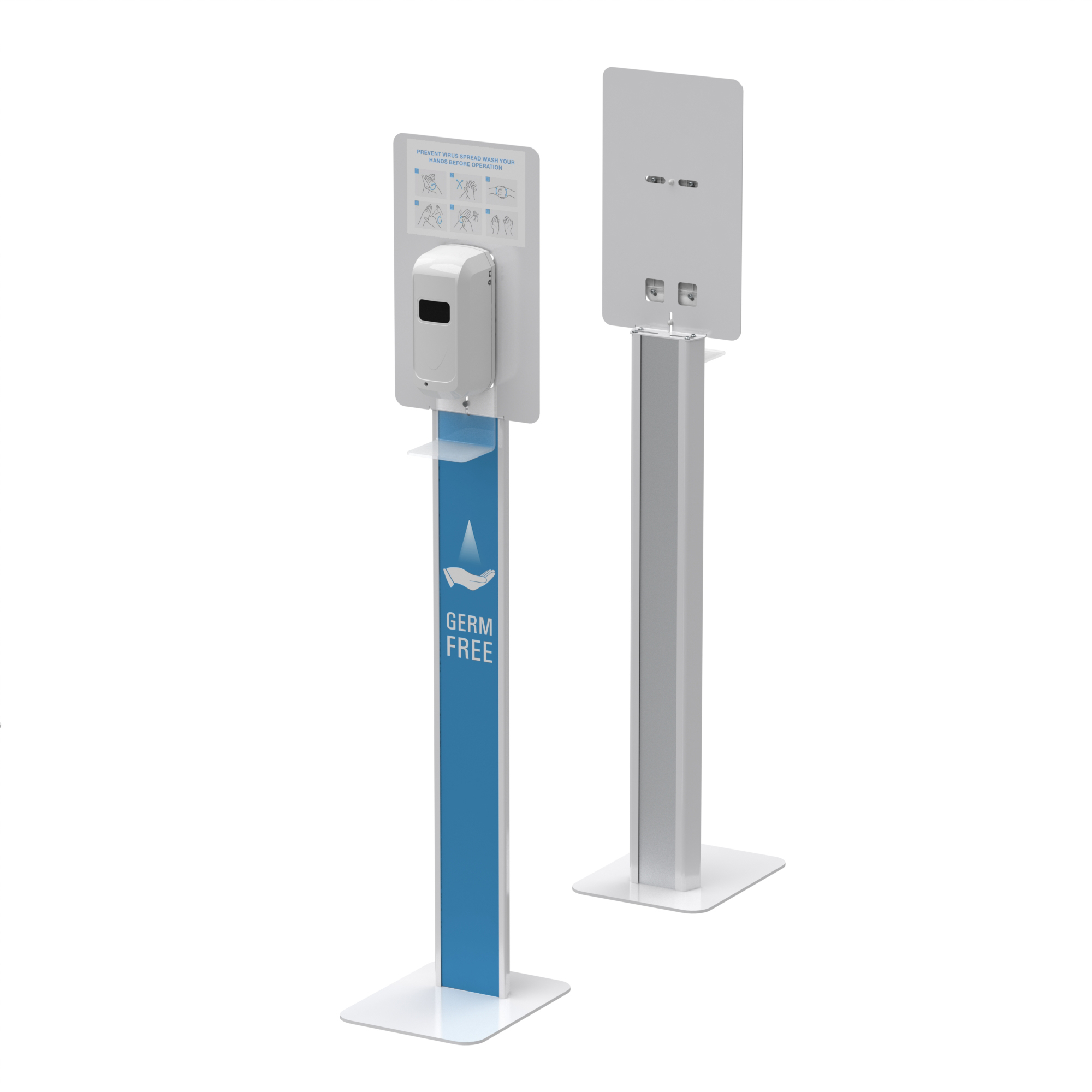 This superior freestanding sanitizer dispenser stand is designed to hold a sanitizer dispenser at perfect height for your guests ,so they can easily clean and sanitize their hands on-the-go. The body and top panel are graphic addable for promotional or informational purposes. Sleek aluminium structure body with stable base, perfect for high traffic areas or crowded space like malls, supermarkets ,hospitals, cafeteriass and any establishment interested in fighting the spread of germs!