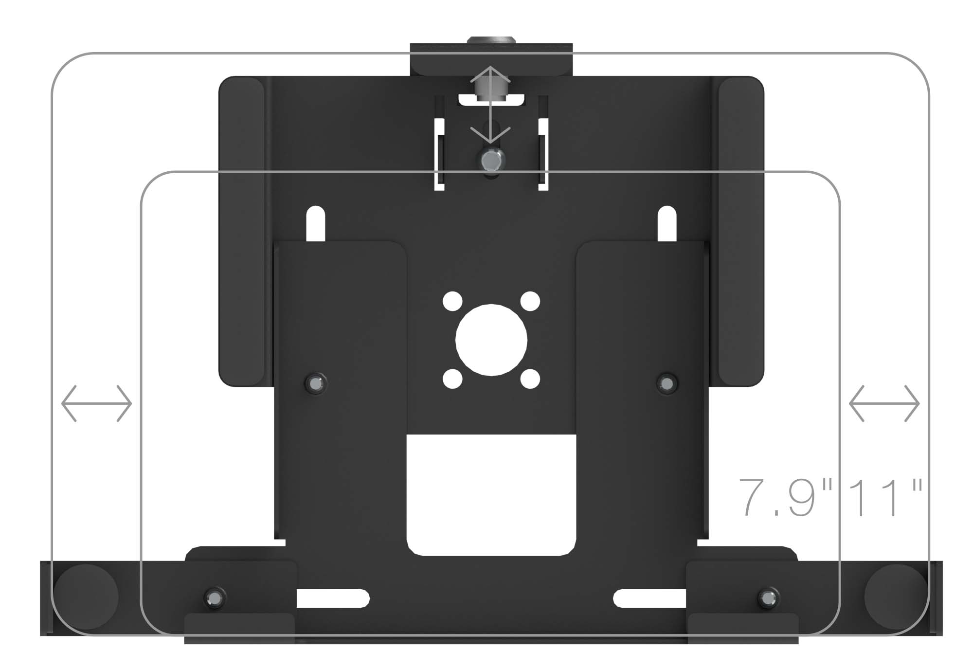 Universal Diagonal Lock Enclosure (ENC-D) / Universal 3-Arm Lock Enclosure (ENC-E) are Universal model with adjustable clamp or arms. It can be compatible for any tablet within their allowed size range.
