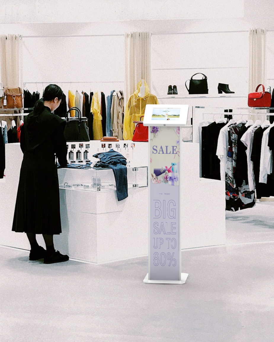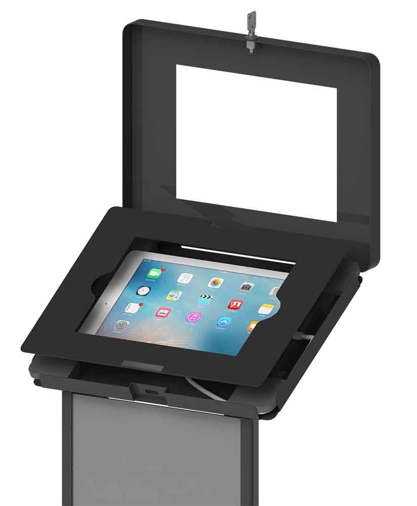 Elite Series is an attractive and highly brandable secure floor standing tablet kiosk stand. Rugged and stable aluminium & steel construction. With changable aluminium-plastic composite panel which is graphic addable gives maxiumum exposure. Slim, stylish premium feel attract focus. Ideal for public areas such as tradeshows, retail,hospitality and so on.