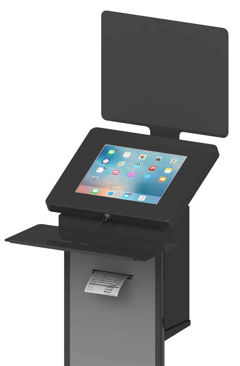 Top banner plate,key board holder, printer box are available to be added additionally as accessories. Top banner plate is a plate for adding top magnetic graphic banner sheet to add additional exposure and guidance.