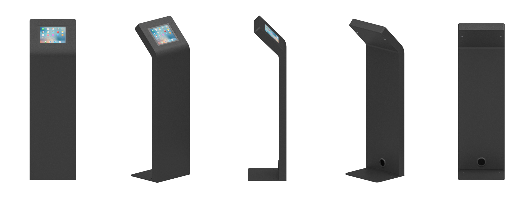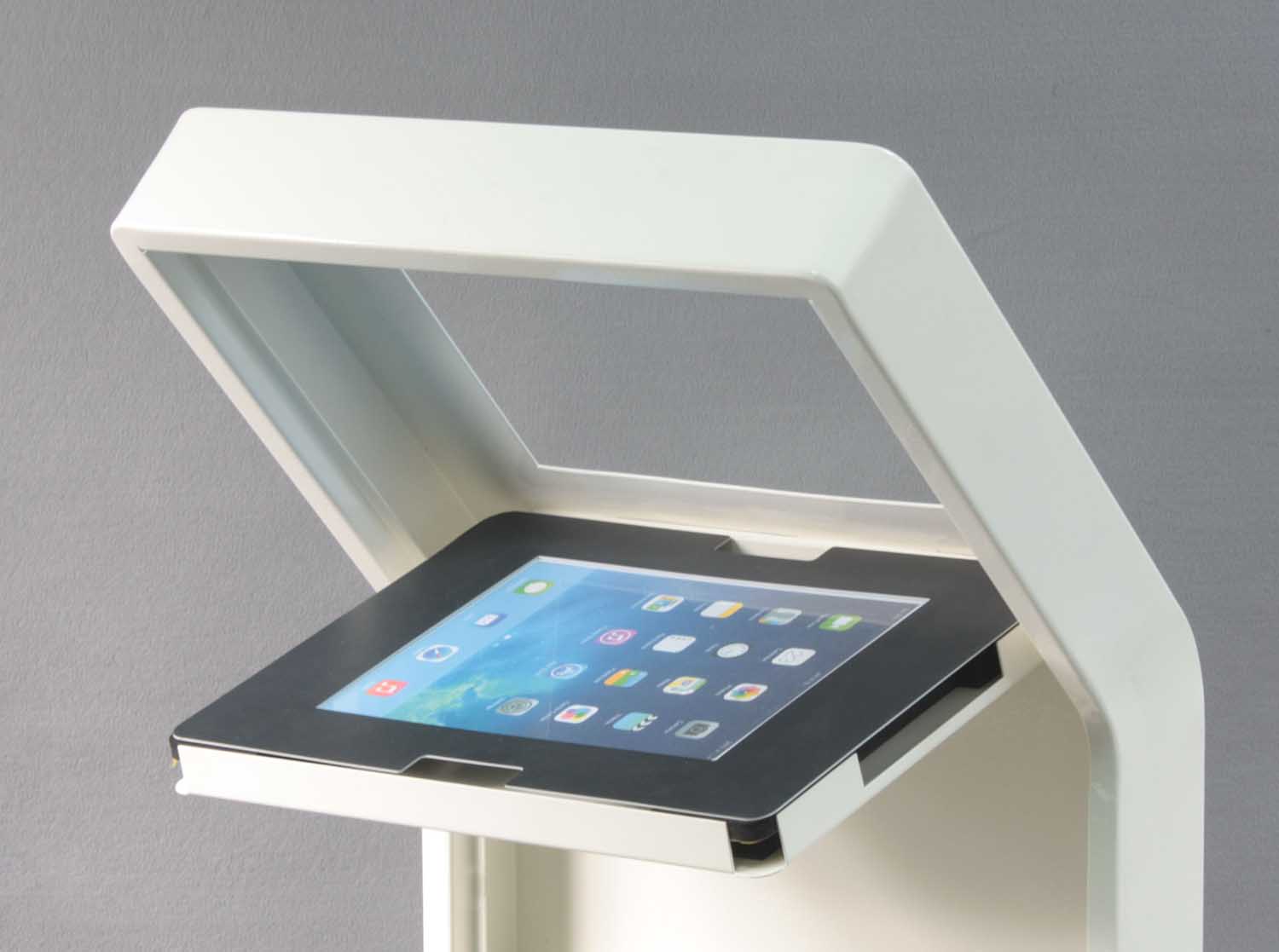 Easy changable magnetic graphic sheet can be customized to your unique artwork. Fully brandable floor tablet kiosk stand. Ideally suited to hospitality, retail/commercial, trade show or security deployments where visibility is important.