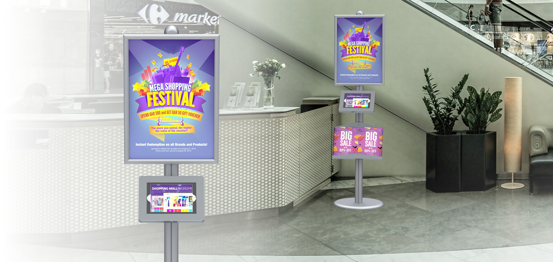 Multi-function series is the most ideal tablet stand for display and advertising purpose. Big single or double sided sign frame catches eyes and gives most exposure of your advertising.
